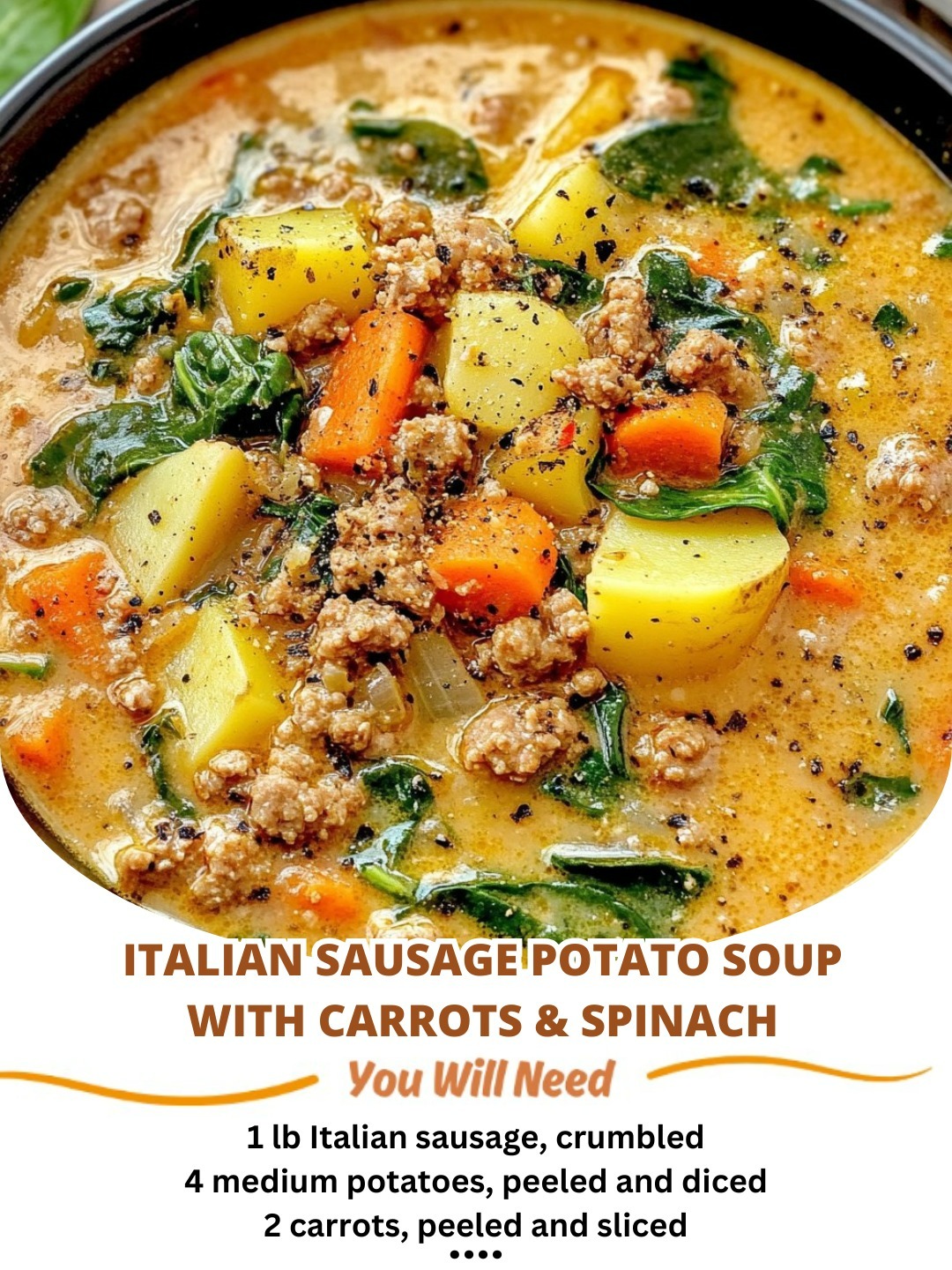 Creamy Italian Sausage Potato Soup with Carrots & Spinach 🍲🥔