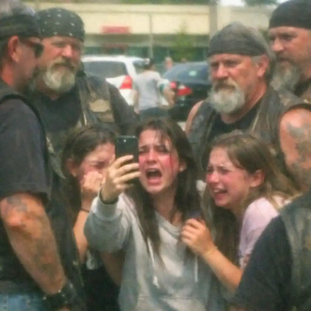Seven massive men in leather vests had surrounded three teenage girls outside the mall, and one of the girls was crying hysterically while another was filming everything on her phone.