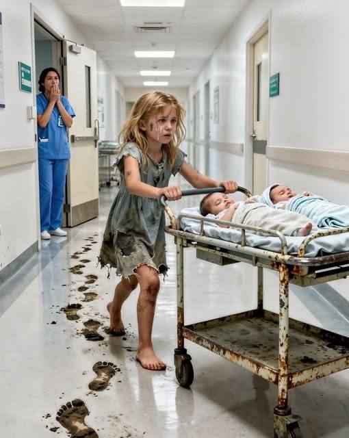 A 7-year-old girl pushes a wheelbarrow for miles to save her two newborn twin brothers—and what happens next leaves the entire hospital speechless…