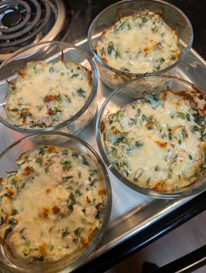 Pair these delicious Spinach Artichoke Chicken Bowls with chips or crackers for a high-protein, low-calorie dish that tastes just like the classic dip!