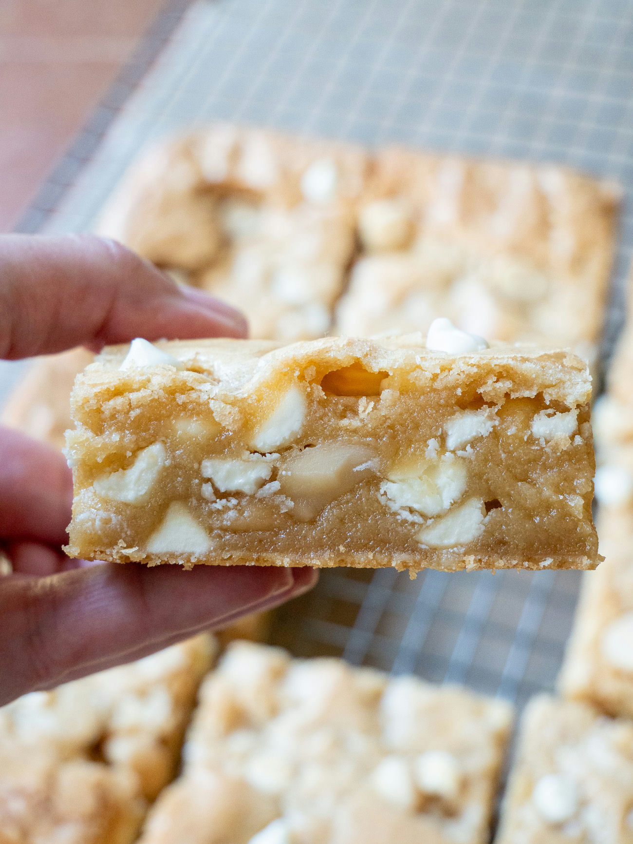 Indulge in the ultimate sweet and buttery treat! These irresistible cookie bars feature a soft, chewy blondie-like base loaded with creamy white chocolate chips and buttery, crunchy macadamia nuts. They’re incredibly easy to make and guaranteed to be a crowd-pleaser.